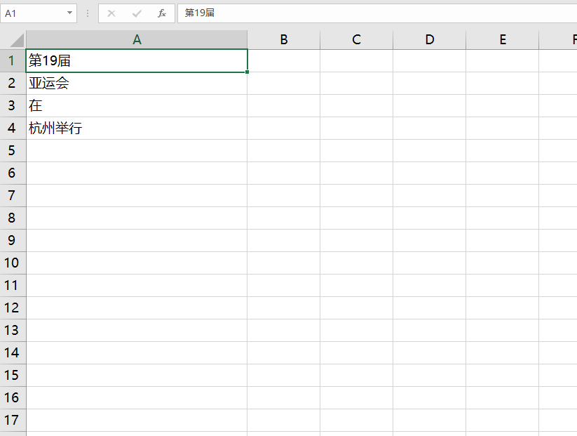 如下图所示,将A1至A4范围内的内容合并到A1单元格中。